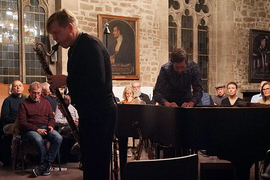Am Samstag, dem 26. Oktober um 19:00 Uhr, folgt ein weiteres Highlight: Vlady Bystrov und der gebürtige Braunschweiger Stefan Schultze, der eigens aus Bern zurückkehrt, geben ein gemeinsames Konzert, bei dem die Komposition und das Klangsystem von Hans Wesker im Mittelpunkt stehen. Zuvor wird Bystrov mit Solo-Werken aus der klassischen Moderne, darunter Luciano Berio, Olga Neuwirth, Werner Heider und Valentin Silvestrov das Publikum auf die Reise durch Klang und Raum einstimmen.